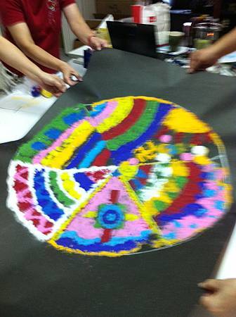 相信許多人看過這段影片。我們創作的曼陀羅當然不能相提並論,只算是取其精神而已。